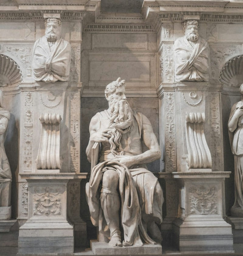 Escultura de Moisés, de Miguel Ángel, en la tumba del papa Julio II en Roma, San Pietro in Vincoli.