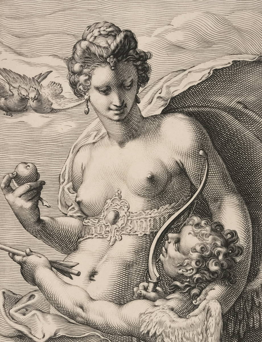 El Renacimiento integra en la imagen de la diosa Venus no solo la concepción del Amor como fuerza de atracción terrenal (Eros) o espiritual (Agapé) sino también la concepción mitológica de Hesíodo que nos habla de Eros, el Amor, como del más antiguo de los dioses.